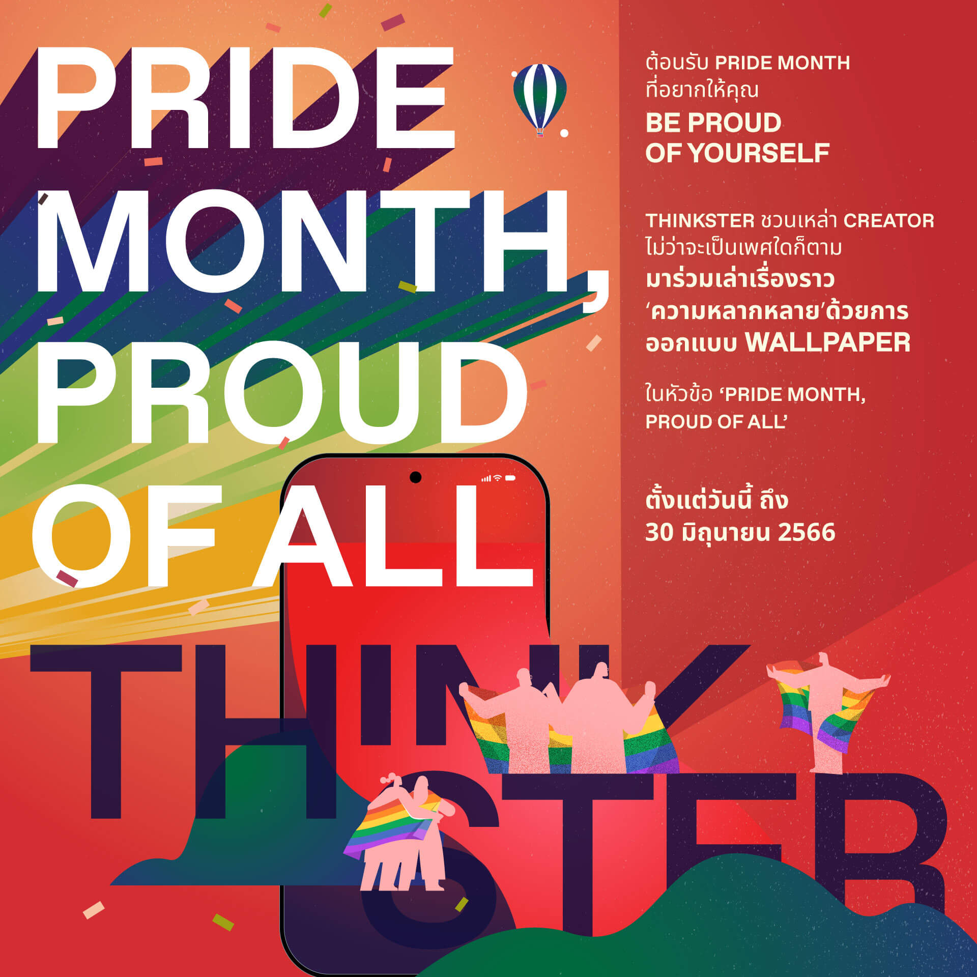 Thinkster ชวนเหล่านักสร้างสรรค์มาร่วมการประกวดออกแบบ Wallpaper สำหรับโทรศัพท์เคลื่อนที่ ภายใต้หัวข้อ ‘Pride Month, Proud of ALL’ เพื่อบอกเล่าเรื่องราวของ ‘ความหลากหลาย’ ในสังคมและสะท้อน ‘ความภาคภูมิใจ’ ที่ได้เป็นตัวของตัวเอง ไม่ว่าคุณจะเป็นใครหรือเพศอะไรก็สามารถส่งผลงานเข้ามาร่วม Creative Brief ได้ เพราะทุกความคิดสร้างสรรค์จะเป็นอีกหนึ่งเสียงที่สร้างความเท่าเทียมกันให้เกิดขึ้นในสังคม